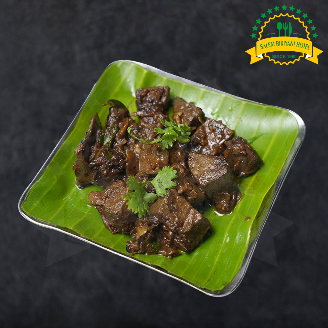Our mutton liver is cooked until tender, then tossed in a spicy masala mix and eaten with our rasam or sambar rice dishes. It goes well with rotis too!